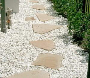 Decorative pebbles are primarily packed in durable poly-woven bags. Most of our bagged pebble is then packed into super sacks for easy storage and transportation. Whether you need a few bags delivered on a pallet to your house or you need multiple truckloads of material for craning to a downtown skyscraper rooftop, we can supply the stone.