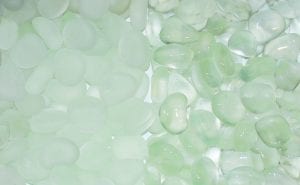 – All Sea Glass Pebbles come dry. The “wet” picture shows how the pebbles look submerged in water.