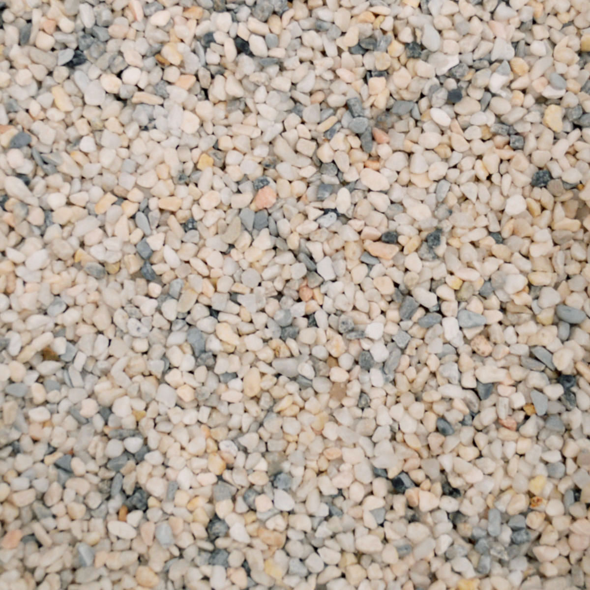 Our White River Rounded Aggregate is a subtle mix of primarily white pebbles with dark grey, orange, creams, tan, and yellow mixed in, perfectly suited for countless landscaping applications. All our rounded aggregate is kiln-dried, so it is commonly used as a seeding aggregate and in epoxy-resin flooring systems.