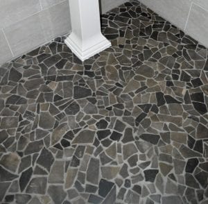 Our Mosaic pebble tile adds a look of refinement and character to any home or commercial project. By adhering natural stones to a mesh backing, we give you the look of hand set stone pieces with a much faster installation.