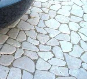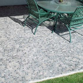 Kind to bare feet, these smooth and uniquely angular stones create a pleasant natural pattern. Commonly used as interior and exterior flooring, this mesh-backed product is also great for wall-cladding and back splashes.