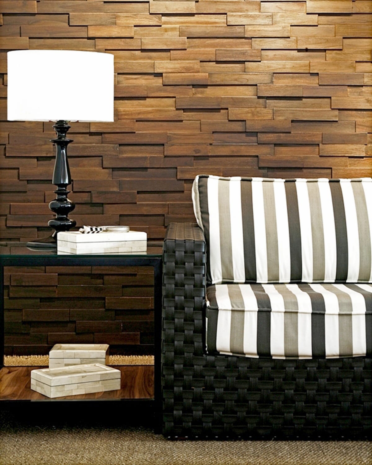 Recycled Teak is a beautiful and natural recycled material which looks stunning both indoors or out. This product is mesh mounted like our pebble tile, but is installed using a wood epoxy.