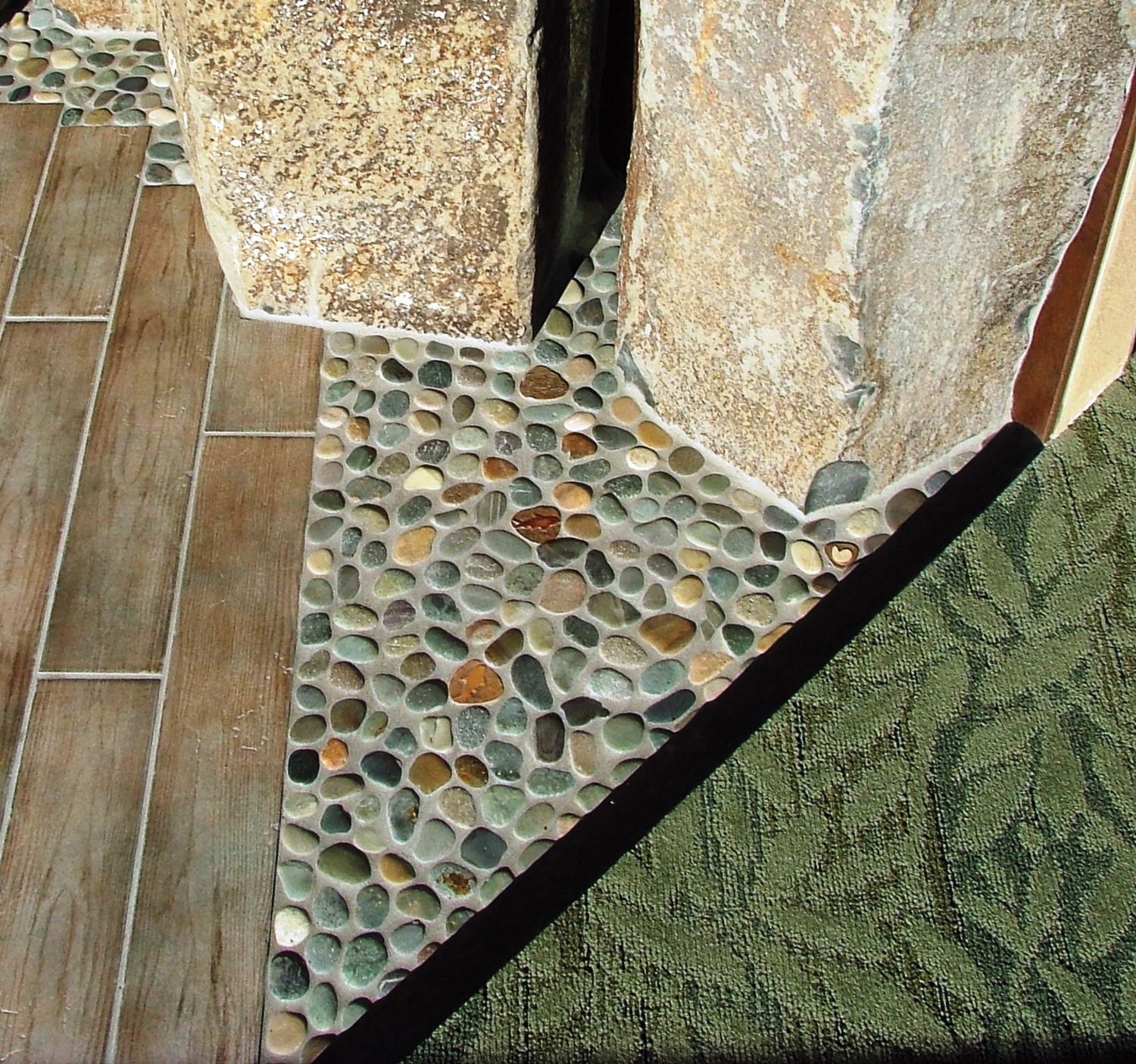 - No two pieces of natural stone are exactly alike. All tiles must be inspected prior to installation to ensure that no blending is required. If you see a particular pebble on the tile that is not to your liking, simply remove it from the mesh backing and replace with a pebble from one of your extra tiles.