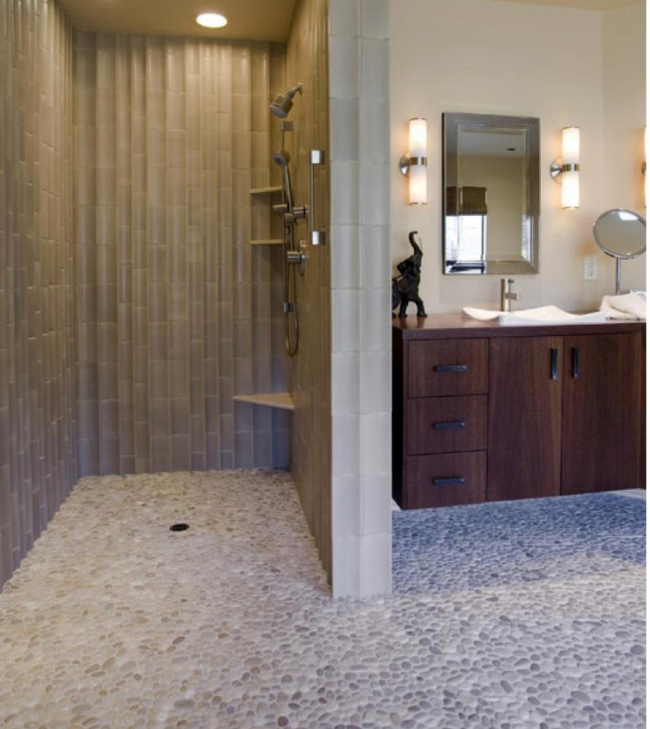 • No two pieces of natural stone are exactly alike. All tiles must be inspected prior to installation to ensure that no blending is required. If you see a particular pebble on the tile that is not to your liking, simply remove it from the mesh backing and replace with a pebble from one of your extra tiles.